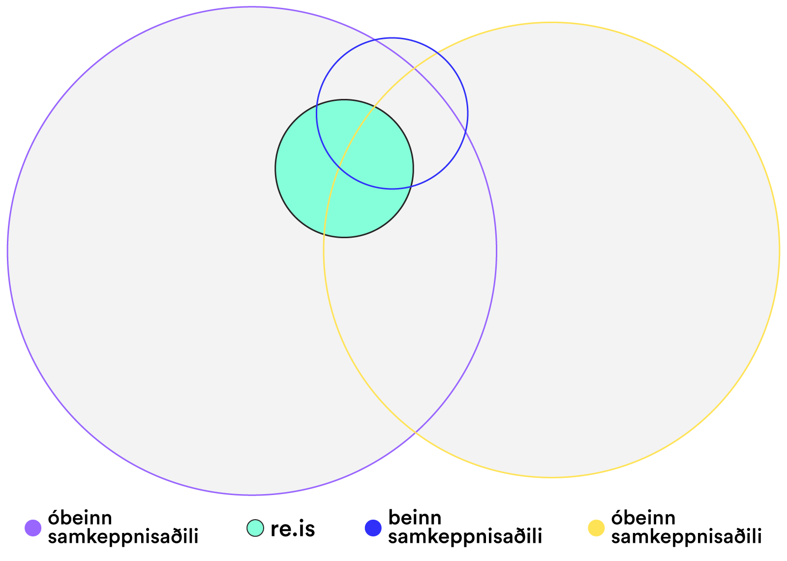 Á myndinni hér að neðan má sjá SEO fótspor Reykjavik Excursions og nokkurra valinna samkeppnisaðila í lok árs 2021. Græni hringurinn er SEO fótspor Reykjavik Excursions á meðan sá blái er fótspor beins samkeppnisaðila. Fjólubláu og gulu hringirnir eru fótspor óbeinna samkeppnisaðila en eru þó stórir samkeppnisaðilar þegar kemur að efnissköpun.